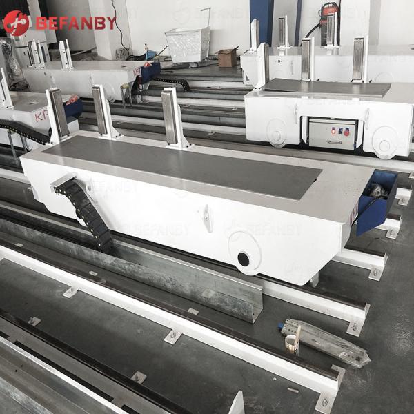 This type of transfer cart needs to run on a fixed track and use a drag chain power supply method. The drag chain is embedded in the groove or moves with the movement of the transfer cart. During the operation of the transfer cart, ensure that the cables move in an orderly manner to avoid entanglement or wear. This power supply method is safe and reliable. This type of transfer cart is suitable for a variety of material handling occasions, such as: production lines, logistics transportation sites, steel plants, etc.